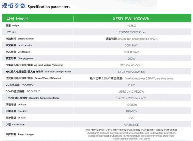 Портативті энергияны сақтау батареясының өнімі туралы мәліметтер