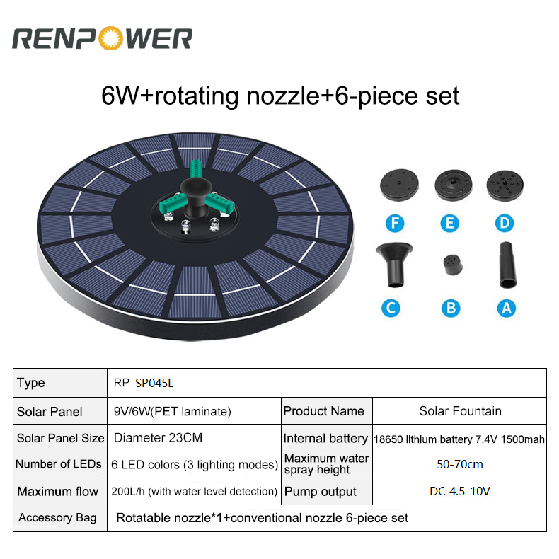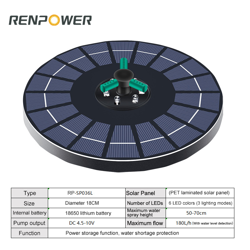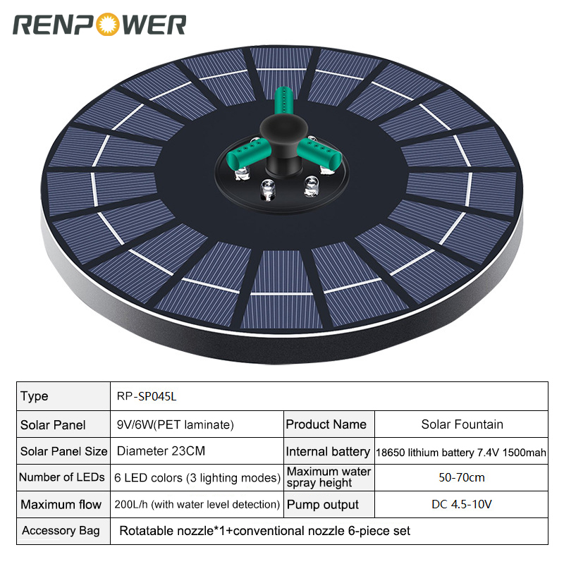 Solar Foundain - бұл су сорғысын су сорғымен су ағызу үшін күн энергиясын пайдаланатын ландшафттық субұрқақ құрылғысы. Бұл өнім жоғары тиімді күн панельдері мен жаңа щеткасыз су сорғысын пайдаланады, ол тез іске қосу, жоғары тиімділік пен күшті тұрақтылық артықшылықтары бар. Сонымен қатар, өнім сыртқы электрмен жабдықтауды қажет етпейді. Бұл оңай және жұмыс істеу оңай емес, сонымен қатар қауіпсіз, сенімді, энергия үнемдейтін және экологиялық таза. Өнім бассейн субұрқақтар, роблязиялық субұрқақтар және балық цистернасының су айналымы сияқты жерлерде кеңінен қолданылады.
